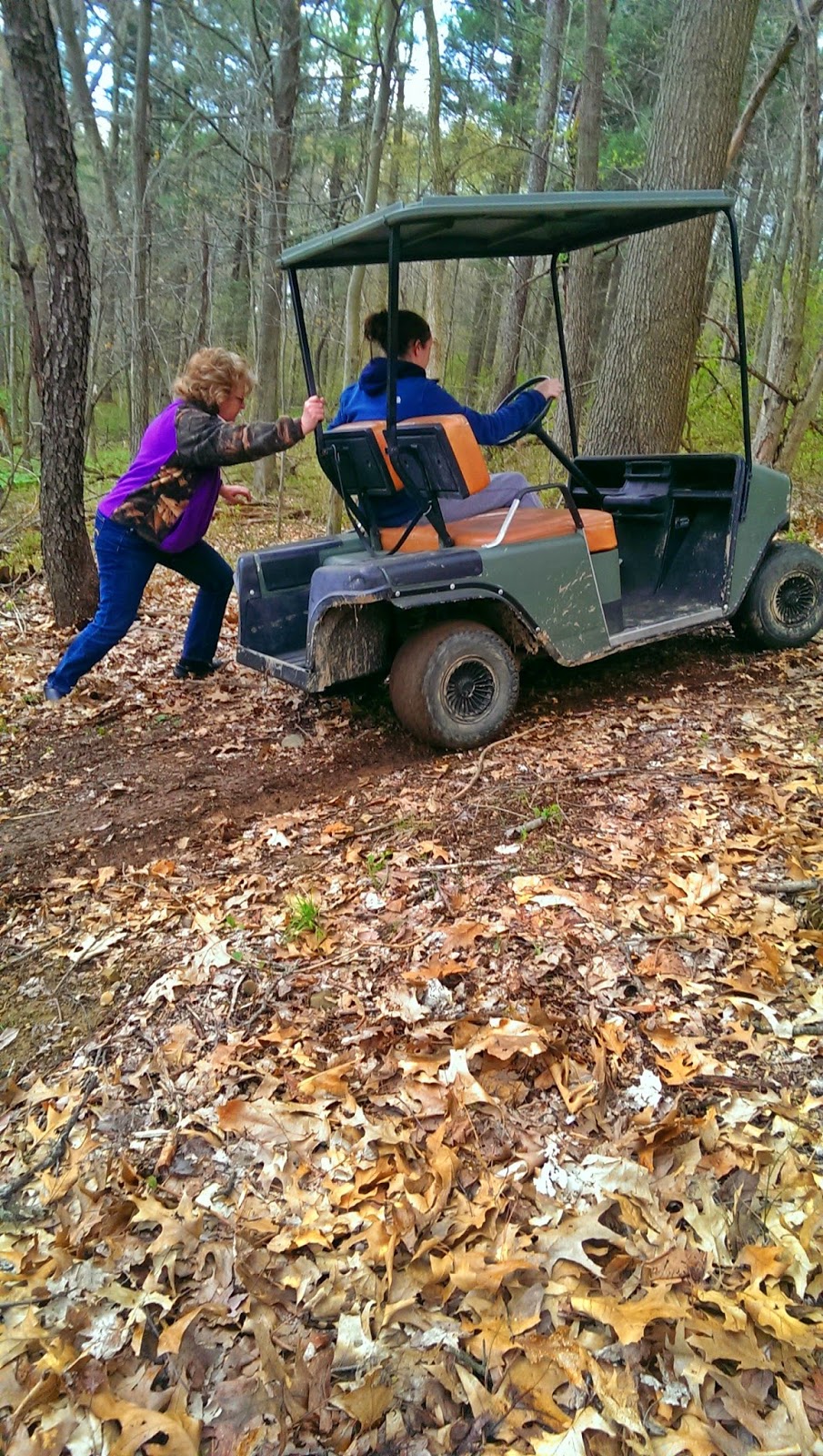 The golf cart doesnt quite have enough huevos to make it many places so we had to push it up a hill or two